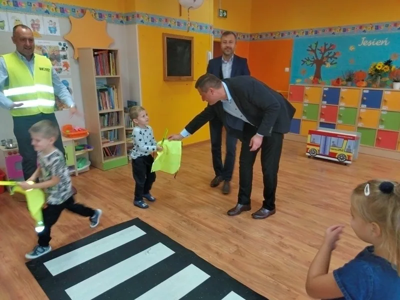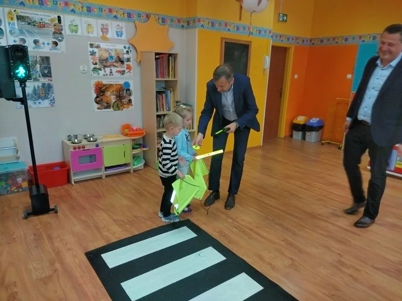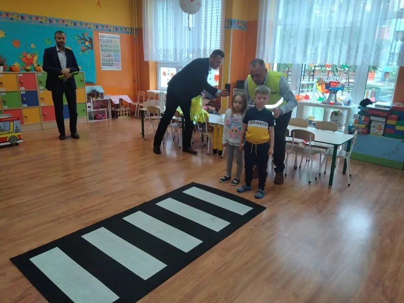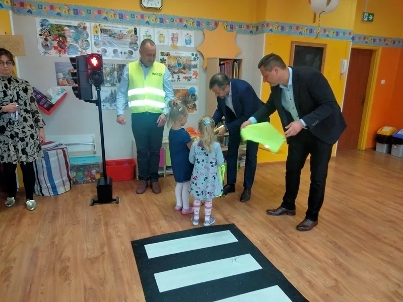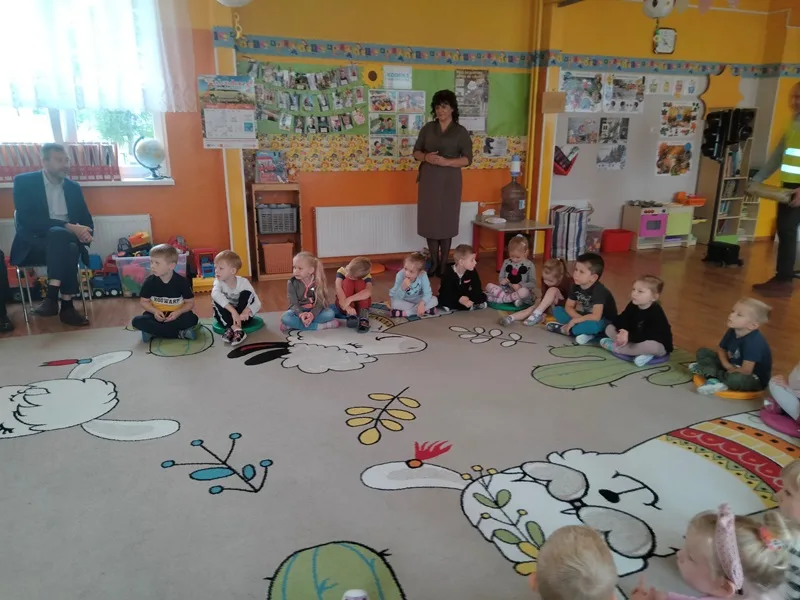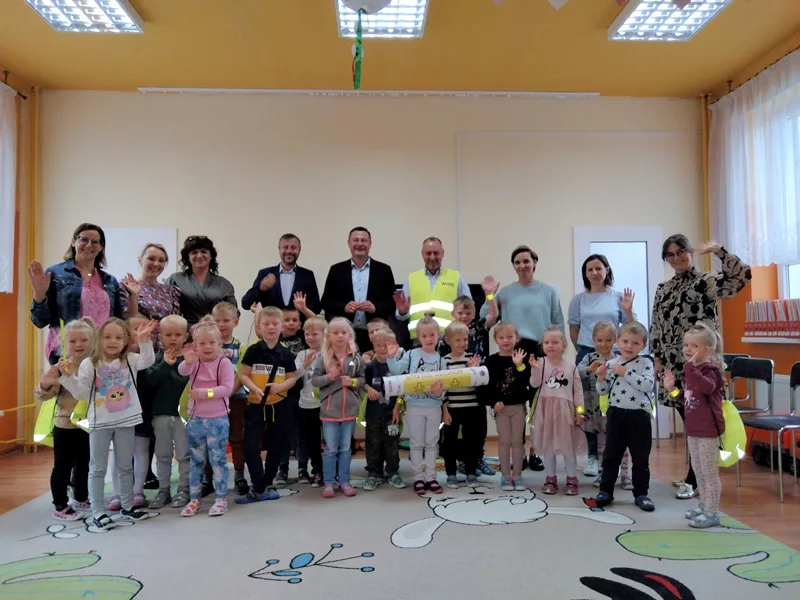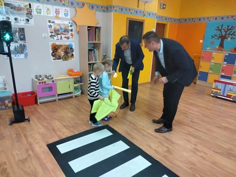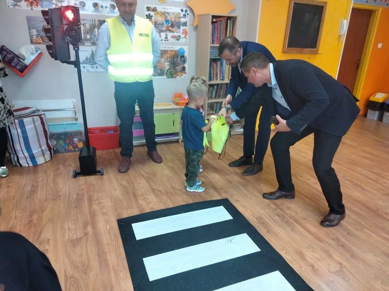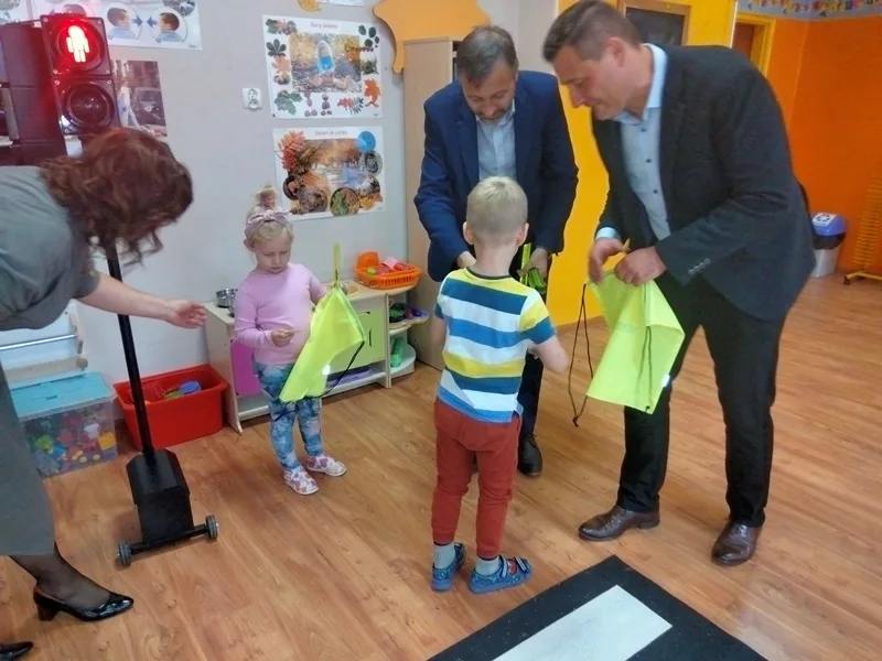27 września br. grupę „Smerfy” odwiedzili niezwykli goście: starszy specjalista ds. bezpieczeństwa ruchu drogowego pilskiego WORD-u – Pan Ireneusz Michniak, Poseł na Sejm RP — Pan Krzysztof Paszyk oraz Zastępca Burmistrza Obornik — Pan Piotr Woszczyk. Podczas tego spotkania Smerfy przypomniały sobie zasady bezpiecznego poruszania się na przejściu dla pieszych, obejrzały film edukacyjny oraz wzięły udział w magicznym eksperymencie, który uzmysłowił im, jak bardzo ważne jest noszenie odblaskowych elementów. Teraz także i my jesteśmy zagorzałymi zwolennikami hasła: „Odblask to nie obciach!”. Ponadto przedszkolaki odbyły egzamin praktyczny z prawidłowego przechodzenia przez pasy i właściwego reagowania na światła sygnalizacji. Każde dziecko otrzymało gratulacje Szanownych Gości, a także zostało nagrodzone odblaskowymi gadżetami. Dodatkową niespodzianką był duży zestaw tematycznych klocków edukacyjnych dla całej grupy. Na zakończenie, w podziękowaniu za to niezwykle ciekawe spotkanie, Smerfy zaśpiewały piosenkę „Kolorowe światła” oraz anglojęzyczną „Red light, green light”.