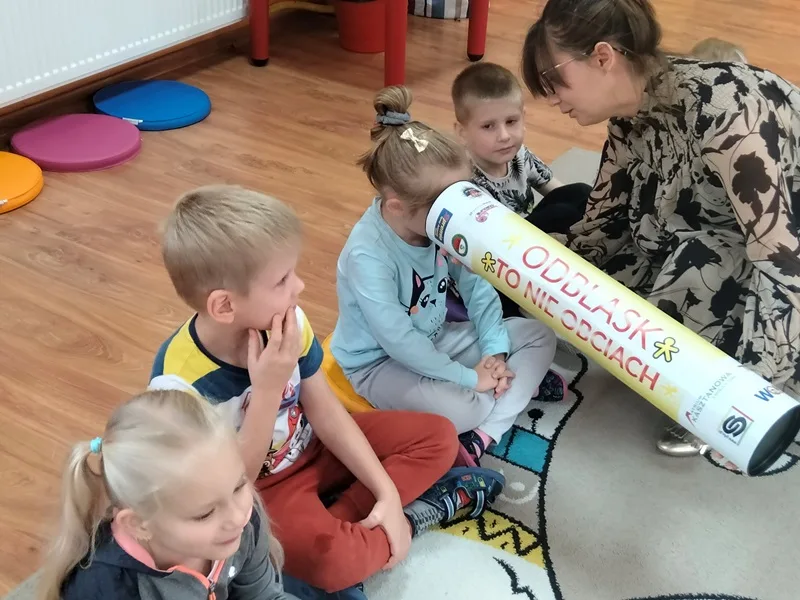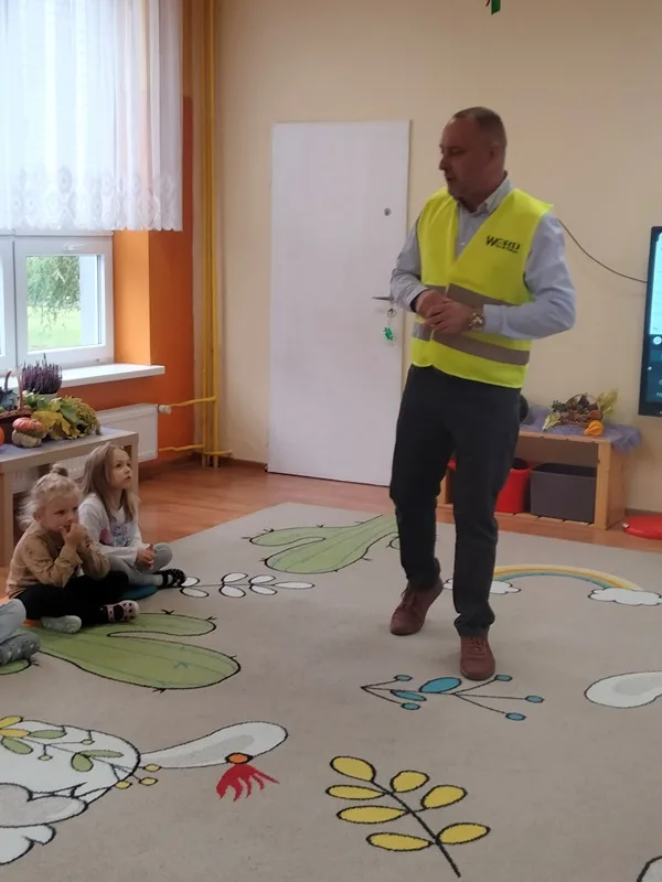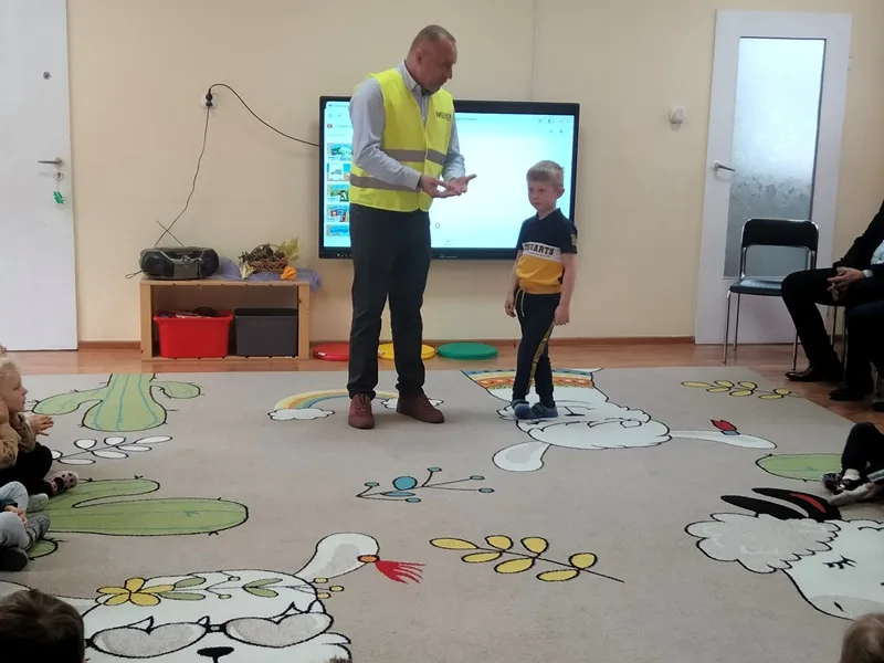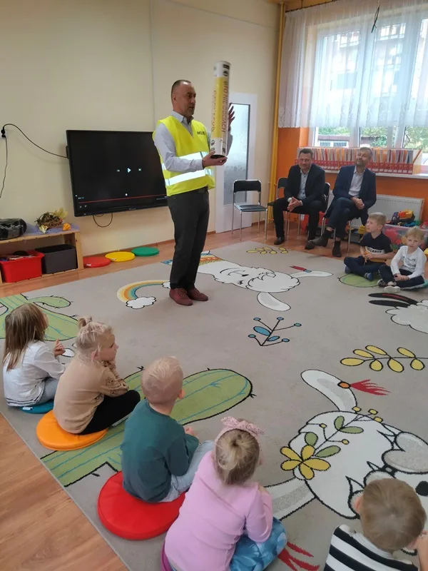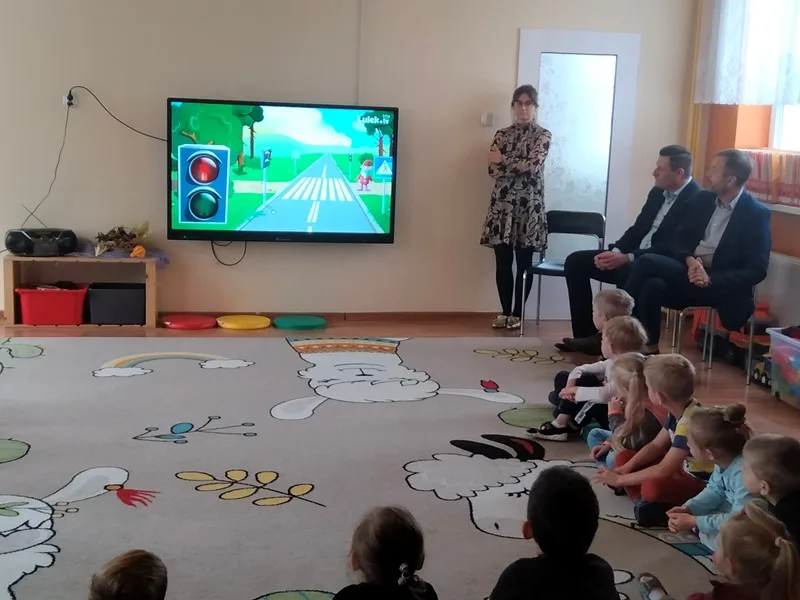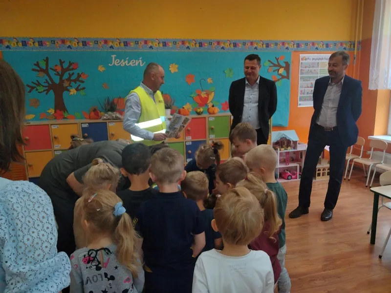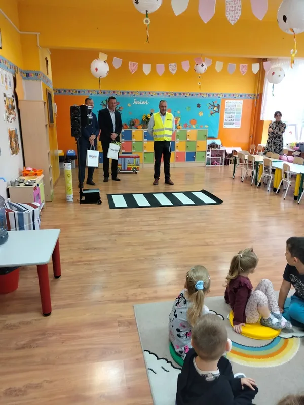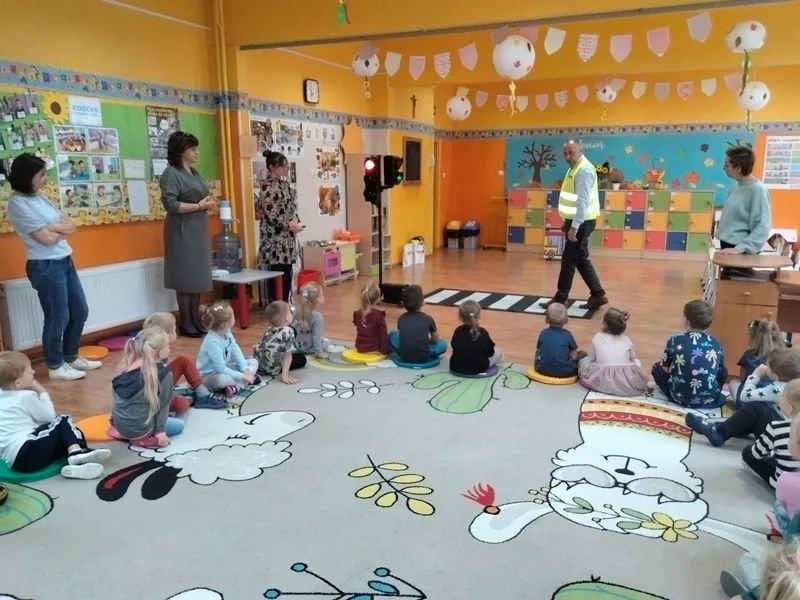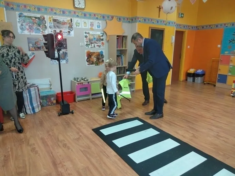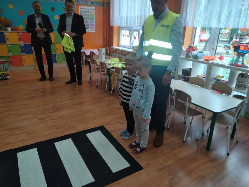 27 września br. grupę „Smerfy” odwiedzili niezwykli goście: starszy specjalista ds. bezpieczeństwa ruchu drogowego pilskiego WORD-u – Pan Ireneusz Michniak, Poseł na Sejm RP — Pan Krzysztof Paszyk oraz Zastępca Burmistrza Obornik — Pan Piotr Woszczyk. Podczas tego spotkania Smerfy przypomniały sobie zasady bezpiecznego poruszania się na przejściu dla pieszych, obejrzały film edukacyjny oraz wzięły udział w magicznym eksperymencie, który uzmysłowił im, jak bardzo ważne jest noszenie odblaskowych elementów. Teraz także i my jesteśmy zagorzałymi zwolennikami hasła: „Odblask to nie obciach!”. Ponadto przedszkolaki odbyły egzamin praktyczny z prawidłowego przechodzenia przez pasy i właściwego reagowania na światła sygnalizacji. Każde dziecko otrzymało gratulacje Szanownych Gości, a także zostało nagrodzone odblaskowymi gadżetami. Dodatkową niespodzianką był duży zestaw tematycznych klocków edukacyjnych dla całej grupy. Na zakończenie, w podziękowaniu za to niezwykle ciekawe spotkanie, Smerfy zaśpiewały piosenkę „Kolorowe światła” oraz anglojęzyczną „Red light, green light”.
